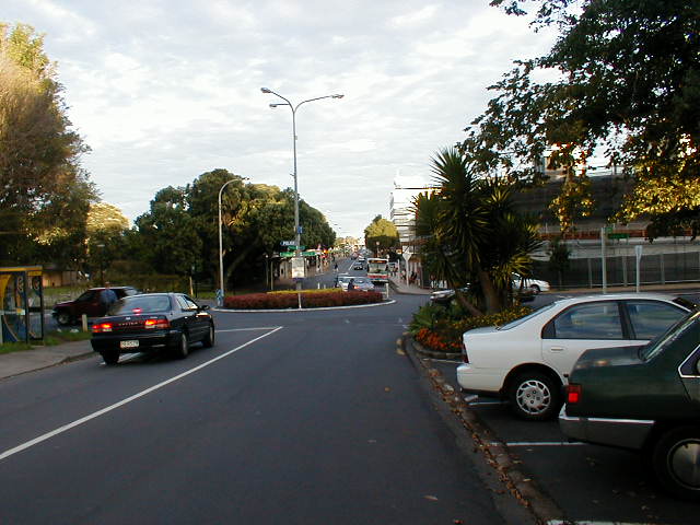 Takapunaの街の写真です。Lake Pupukeから歩いて5分位です。 一番左の写真にロータリー(roundabout = 交差点の真ん中に有る円)が見えます。 ロータリーから向こう側がLake Roadで、TakapunaのMain Streetです。 左から、2番目の写真は、Lake Roadを少し300m位歩いた地点で、バスターミナルになっています。 Lake Roadは、ほぼ南北に走っていますが、2枚とも、北から南を向いた方角から撮影しました。 左から3番目の写真は、Hurstmere Roadです。 やや狭い道路で、Takapunaの商店街が固まっています。 この道路は、左から2番目の写真の地点から50m位南に向かって歩いたら、左に折れる方向に走っています。 しかし、この写真は、左に折れて直ぐではなく、500m位歩いて、Hurstmere Roadの終点に辿り着いて、振り返った姿です。 一番右の写真は、左から3番目の写真を撮って振り返った方角から撮った写真で、Roundaboutから向こうは、Kitchener Roadになります。